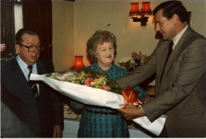 When Nancy and Tom had their silver wedding anniversary, they had a joint party with Colin and May in Doddington House. About the same time, the brewery also wanted to celebrate their 25 years as tenants. "We couldn't believe it when the brewery rang," exclaims Nancy. "Twenty-five years! We had to choose a present to the value of £250. Because our name is Moss, my niece started me off with six Royal Doulton moss rose mugs. I couldn't think what they could give us, so I had a moss rose dinner service. And I've still got it, and nothing has been broken. They also gave